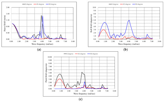 Motion RAOs: (a) heave; (b) roll; (c) pitch.