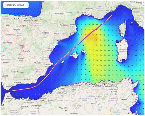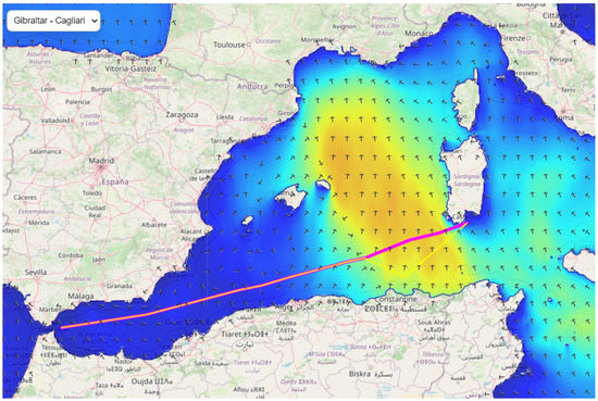 Alternate route recommendation on route Gibraltar–Cagliari.