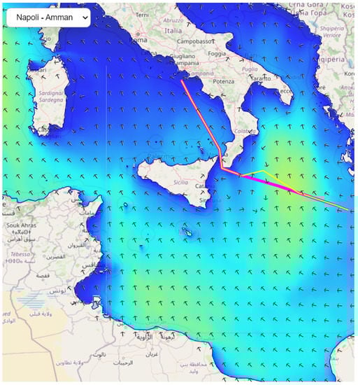 Regarding the wave period, it is observed that there was a decrease of approximately with a maximum decrease of and a minimum decrease of . In terms of wind speed, only the routes of Marseille–Algeria and Napoli–Amman demonstrated a decrease of and , respectively. This is due to the fact that in the other routes the wind speed threshold was not exceeded.
