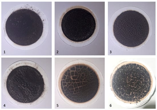 The obtained sediments (sludge) after deasphaltation and filtration for fuel samples 1–6.