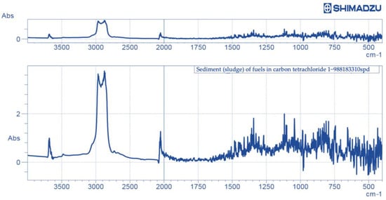 In order to obtain additional information about fuel deposits structural-group composition, IR spectrometry studies were carried out on an IRAaffinity-1 IR-Fourier spectrometer [49,56]. A precipitate solution was prepared at a concentration of 1% in carbon tetrachloride.