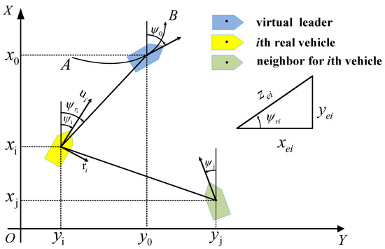 Based on the geometrical relation between the current position of ith vehicle and the reference signal in Figure 2, the error and are calculated as Equation (8).