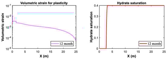 Plasticity and hydrate saturation distributions along y = 25 m after 1 year.