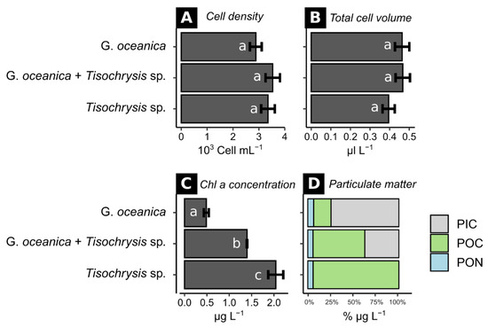 | G. oceanica + Tisochrysis sp. | 6.3 ± 0.9 a | 0.40 ± 0.05 a | 25.8 | 17 | 2.6 <dl | 19.3 ns | 11.6 ns | 0.7 | |