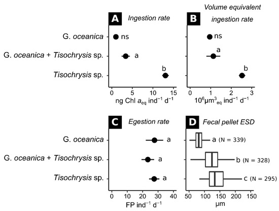 | Volume equivalent ingestion rate (106 µm3 eq ind−1 d−1) | y = 7.4 × 10−7 e(2.19x) + 1.6 | 0.67 *** | ||