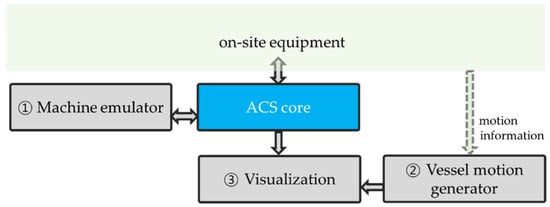 As the safety requirements increase over time, the concept of digital twins can be applied to analyze in advance the likely effects and problems that could occur when a new system is applied as well as analyze any accidents that actually occur. The methods of designing digital twins can be divided into two main categories [5,6]. The first category is data-based, and the second one is system-based. A data-based digital twin means to structure the data of a physical object according to some criteria, and a system-based digital twin is a method that focuses on real objects. In the case of the ACS, a digital twin design method for a physical object is a better choice because modelling is performed to imitate real equipment and software (SW). The main objective of this paper is to apply digital twin technology to visualize the ACS of an offshore drilling system and to analyze situations about events related to collisions.