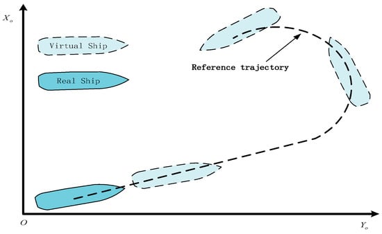 In this study, a reference trajectory is generated by providing a predefined input to the virtual underactuated USV, as shown in Figure 3.