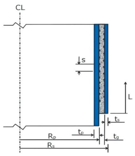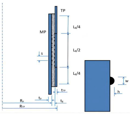In Equation (5), seff and s are the effective vertical spacing and vertical center spacing, respectively, between two adjacent shear keys; ω is the width of shear key; E is the elastic modulus of steel; μ is the Poisson’s ratio of steel; n is the number of effective shear bonds (the actual number of shear bonds on both sides of the grouted joint is n + 1); φ is the design coefficient (it is assigned as 1.0 in the calculation of the load on the shear bond, and 0.5 in the calculation of the maximum nominal radial contact pressure).