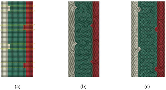 To investigate the influence of shear keys on the bearing capacity of grouted joints, shear keys with three shapes are employed. It is shown in Figure 8.