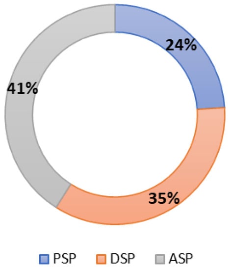 Toxic HAB events in Chile are mainly caused by the PSP syndrome, with 41% of occurrences, followed by DSP and ASP syndrome, with 35% and 24% of occurrences, respectively (Figure 6).