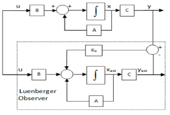 As can be seen from the above equation, without introducing feedback, the dynamics of the observed error are completely determined by system matrix A. If the characteristic roots of A are all on the left side of the complex plane, the observed error will approach zero with the passage of time. However, when the system itself is unstable, its zero pole needs to be configured by introducing feedback, and so the design of the Luenberger observer can be expressed as