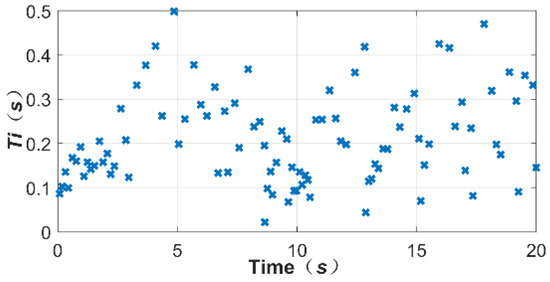 Firstly, the Equation (9) is introduced as a precondition, and the control law (13) executes events (22) through all tt in increasing time series, and the control law makes the system form a sliding mode. When is the time when the execution event triggers, , as the execution interval, should meet the following conditions