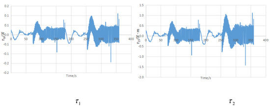 The hydrodynamic coefficient is the value of the partial derivative of the hydrodynamic component to AUV motion parameters at the expansion point. For example, is the influence coefficient of the angular acceleration rotating around the Y axis, which causes the force Z on the Z axis. Then, is the second derivative of the influence of (Z-axis speed) on moment . The hydrodynamic coefficient is usually obtained by performing an experiment. is the moment of inertia of AUV about the Y axis. , represent the center of gravity coordinates, and , represent the center of gravity coordinates. is AUV gravity and is AUV buoyancy. , are control laws. In this paper, they represent force and moment.