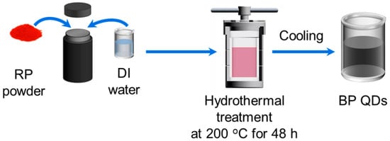 Aqueous preparation procedure of BP QDs from RP via the hydrothermal method.