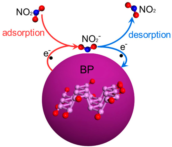 Schematic drawing of the gas-sensing mechanism of the BP sensor to NO2.