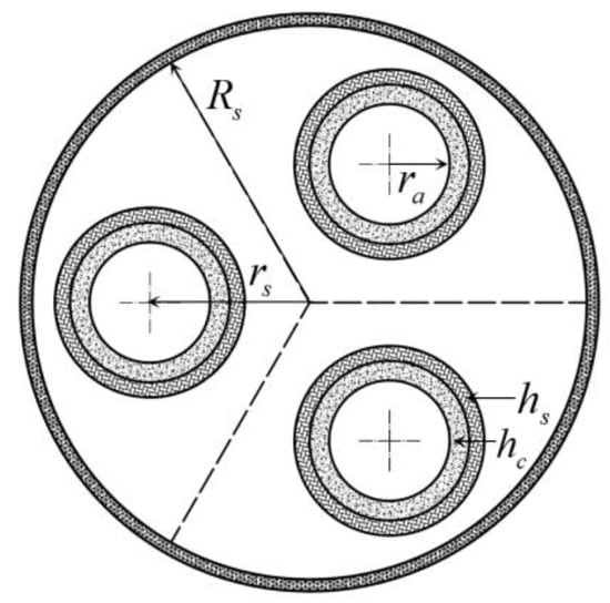 Due to the special material properties of soft joints, the soft material models presented in this section are incorporated in the mechanical energy terms of (15) describing the module deformation energy and viscous losses. The sectional view of modeled soft joint in this study is presented in Figure 5, which is composed of multiple material parts. More specifically, each hydraulic soft actuator has a soft silicone chamber of internal radius ra and silicone wall thickness hc, surrounded by a fabric-reinforced layer of wall thickness hs. So, a novel non-Newtonian visco-hyperelastic constitutive model is considered for the soft silicone. First, the circular fabric reinforcement prevents radial expansion in each actuator, and only allows it to elongate when actuated under water pressure. Considering axial tensile stress applied to each actuated chamber, the inverse rule of mixtures as in (20) is applied for determining the mechanical properties of the composite layer as the stress is transverse to the fabric [40].