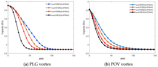 | Parameters | PLG Vortex Information Capacity (B/s) | POV Vortex Information Capacity (B/s) |
