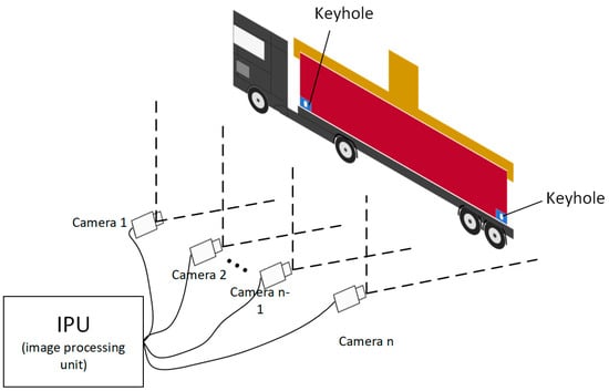 The vision-based measurement system for container handling proposed in this work consists of an image processing unit, several industrial cameras, and brackets for fixing the cameras, as presented in Figure 1. The camera is used to capture the image of the side of the container during the unloading operation. There are no less than two cameras. The resolution of the camera is 1980×1080, the FPS is 24 and the installation position of the camera can capture the position of the front and rear lock pins of the container.