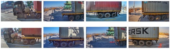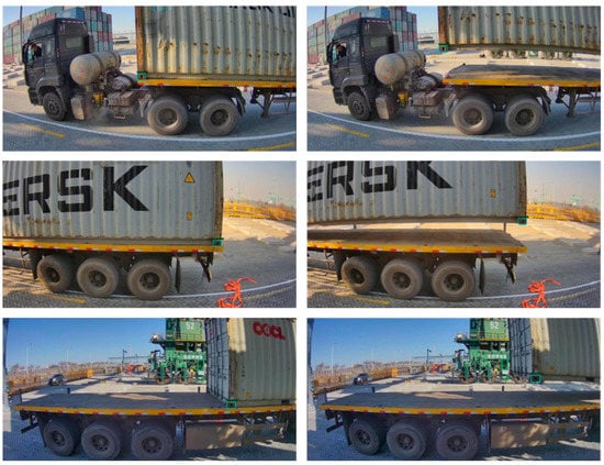 In order to verify the reliability of the system designed in this paper, the data used in the experiment were all from the container loading and unloading tasks of container trucks of different sizes in a terminal in Tianjin. The schematic diagram of the on-site camera installation is shown in Figure 14. The resolution of the image was 1980 × 1080, and the fps was 24.