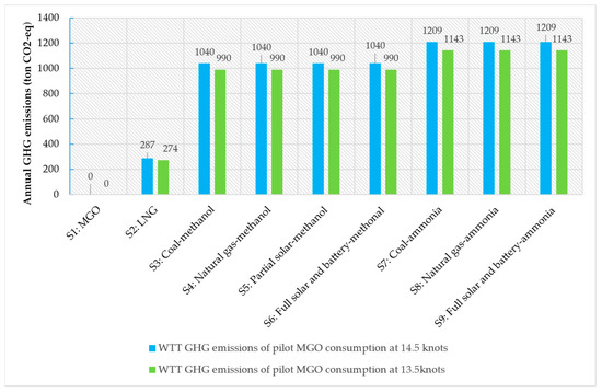 Annual WTT GHG emissions of annual pilot MGO consumption.