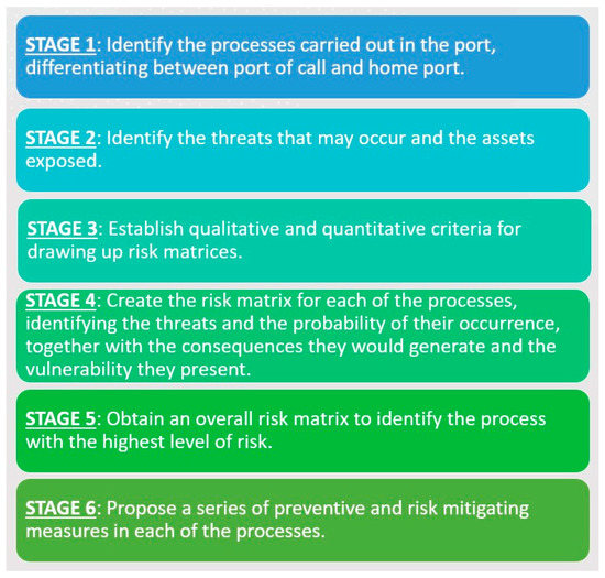 The proposed methodology is based on different phases that allow an approach to the issue to be resolved by identifying the main threats to which cruise ship traffic is exposed in ports and establishing criteria that allow risk matrices to be defined for the different processes considered in port operations. Thus, a global risk matrix can be defined to adequately assess the level of risk and define risk mitigation actions.