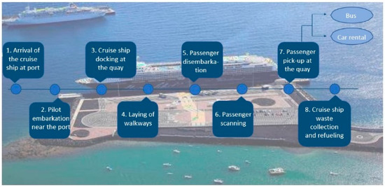In the case of the port of call, the arrival of the ship at the port and disembarkation of passengers takes place in the following process (Figure 4):