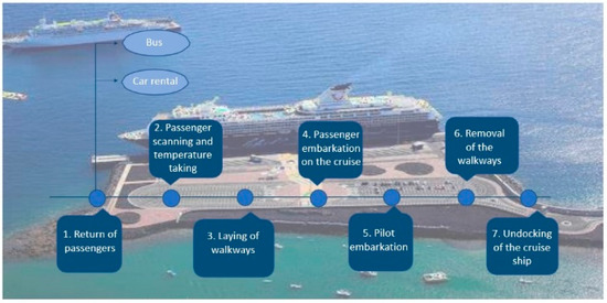The results obtained are considered adequate for the approaches defined in the port of Arrecife, although the limitations of the model are centred on the definition of the processes in the different port operations carried out for cruise ship traffic and on the effective application of the proposed measures. This is a very vulnerable type of traffic due to the large number of people to whom the measures must be applied.