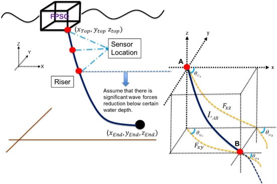 Nowadays, the demand for global energy keeps increasing due to world economic growth. Despite more use of renewable energy, the supply of oil and gas is still important. In particular, offshore platforms continue to produce a good portion of the entire oil and gas. For safety and prevention of spills, the structural integrity of production riser (elastic pipeline to transfer oil and gas from well to platform) and mooring system is considered to be highly important [1,2,3]. Thus, many researchers try to develop a robust approach for monitoring risers by using sensors and ROVs (remotely operated vehicles) [4].