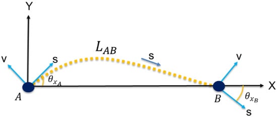 Next, the small segment length equation (Equation (2)) can be re-expressed using the following relations: