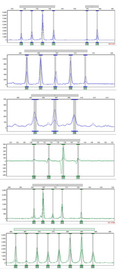 - Holland, M.M.; Parson, W. GeneMarker® HID: A Reliable Software Tool for the Analysis of Forensic STR Data: GENEMARKER® HID. J. Forensic Sci. 2011, 56, 29–35. [Google Scholar] [CrossRef]