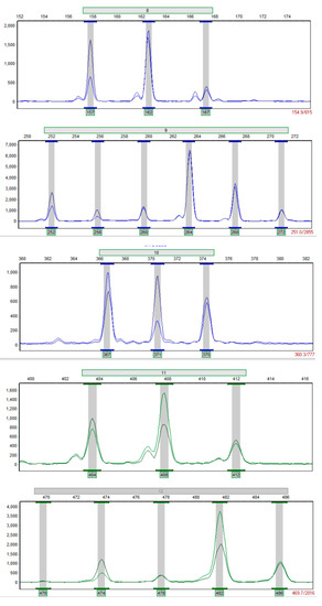 - Peakall, R.; Smouse, P. GenAlEx 6.5: Genetic analysis in Excel. Population genetic software for teaching and research—An update. Bioinformatics 2012, 28, 2537–2539. [Google Scholar] [CrossRef]