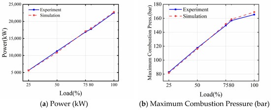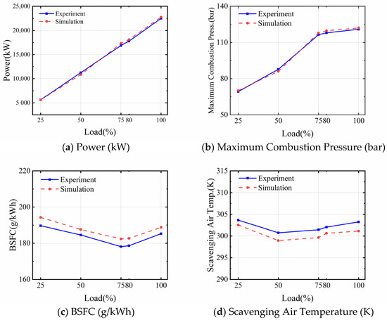 Combined with the shipyard bench report, Figure 5 shows the comparison of the main simulation parameters and experimental parameters under different loads in gas mode.