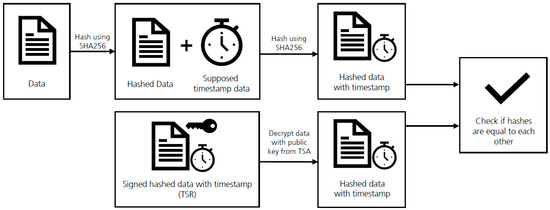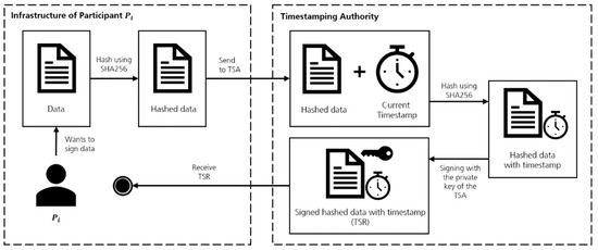 However, the inflationary usage of blockchain technology in all possible use cases has been questioned more and more recently [14,15]. Also, there are other less complex solutions to the problem of providing proof that data existed at a certain point in time and was not modified. For instance, a possibility of this kind in regard to timestamps is represented by so-called timestamping authorities [16,17]. A TSA is a service that establishes that some data existed at the specified time based on reliable time sources and cryptographic signatures. Depending on the application, such a TSA can be operated in-house or externally, either as a commercial service or as a service for third parties.