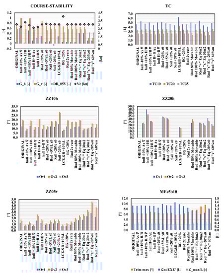 - Hull +10% H/B*—fictitious increment of hull aspect ratio (+5% H e −5% B).