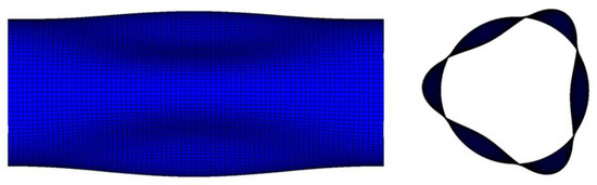 Example of the buckling mode of the cylindrical shell (n = 3).