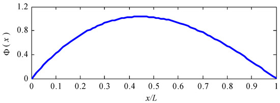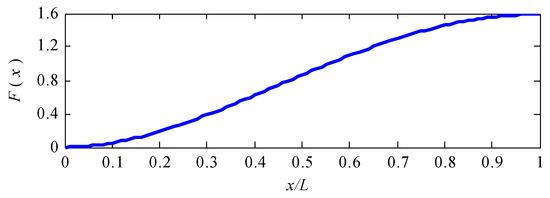 A graph of the approximated function is shown in Figure 4. It can be seen that the boundary conditions given in Equations (8) and (17) are satisfied. Hence, it is verified that the three unknown functions V(x), W(x) and U(x) can be approximated by Equations (21) and (14), respectively.