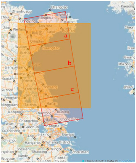SAR image distribution in the South Yellow Sea. (a) Qingdao, (b) Rizhao and Liangungang, and (c) Yancheng and Nantong.