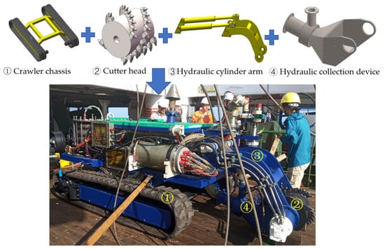 - Ishiguro, S.; Yamauchi, Y.; Odaka, H.; Akiyama, S. Development of mining element engineering test machine for operating in seafloor hydrothermal deposits. Mitsubishi Heavy Ind. Tech. Rev. 2013, 50, 21–27. [Google Scholar]