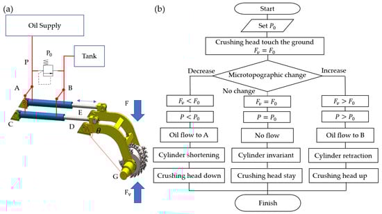 In the current research, utilizing the mechanical property difference between the crust and substrate, the cutting force based self-adaptive control is proposed and tested as well. The adaptation system is as shown in Figure 4a, it consists of the cutter head, hydraulic cylinders, relief valve, and oil supply. Hydraulic cylinder parameters are shown in Table 6.