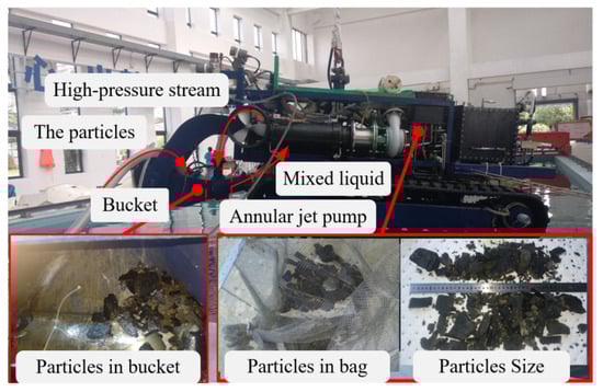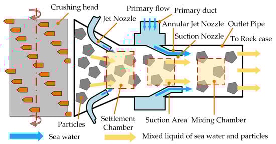 Firstly, the crushing head breaks the crusts into particles and the particles go into the settlement chamber and are sucked into the jet pump. The particles are collected and stored in a rock case, the primary flow is supplied by slurry pumps, and it is driven by a 3000 v electric motor. Table 7 shows the main hydraulic collection parameters.