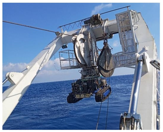 Japan Oil, Gas and Metals National Corporation (JOGMEC) launched a feasibility research project for SMS mining in 2008 and developed a test machine in March of 2012. The machine was tested in an offshore environment to excavate SMSs from the sea floor in the Okinawa waters in November 2012, where it successfully collected SMS samples. The machine was a 184 kW-class system weighing 20 metric tons with four suspension crawlers, cutting drum, and centrifugal slurry pump for collection. It collected approximately 25 kg of SMS samples placed in ore storage []. During the mining tests, two ships were adopted for the ore collecting test and ore lifting support [].