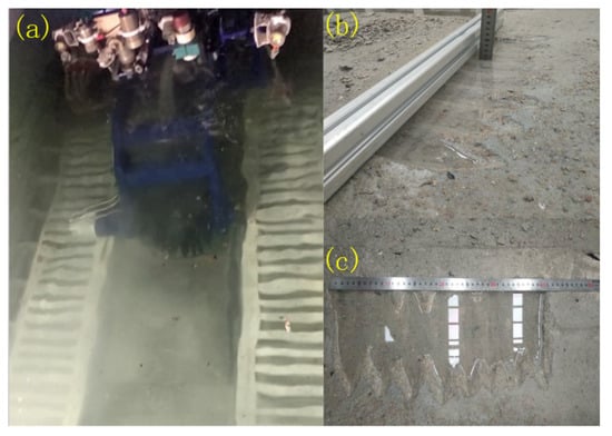 (a)Tank testing, (b) depth of the grooves, (c) grooves on the cement block.