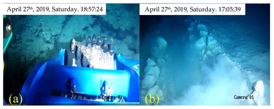 Figure 18 shows the camera image during cutting tests. The plumes covered the sight of cameras as the actions of crushing and hydraulic collection. In this situation, the front image sonar was used to keep the vehicle away from big rocks. The positioning and navigation system worked well in the tests and plays an essential role in the launch and recovery process.