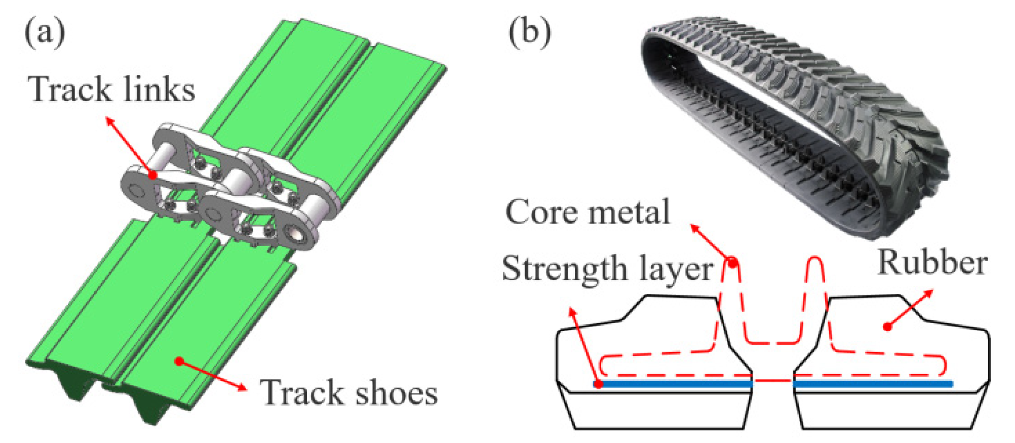| Steel tracks | Land application: Company: XCMG, Sany, Caterpillar, Komatsu, etc. including Mining machines, Excavators, Crawler cranes, Bulldozers, etc. Marine application: SMD Trencher, Mineral extractors, and deep-sea mineral extraction vehicle, Royal IHC “I-TRENCHER” Trencher, Seatools “PATANIA II” Mining vehicle and Trencher, etc. | Advantages: Best traction; Easily removable; Rarely damaged. Disadvantages: More expensive; Large vibration; More weight; lower speeds; Poor corrosion resistance. |