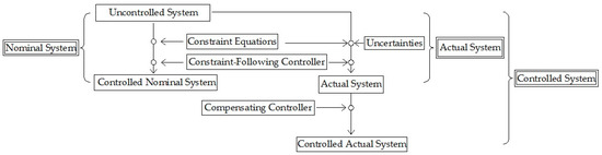 In this conceptualization, the control force is an additional control force added to the system in order to compensate for the uncertainties in the actual system, and , where the acceleration for compensating uncertainties is shown as . The term can be shown in explicit form as [34]: