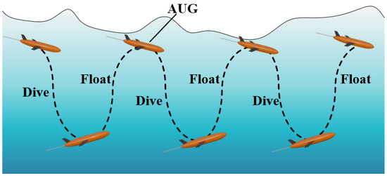 As a new type of underwater vehicle [1,2,3,4,5,6,7], autonomous underwater gliders (AUGs)—driven by a centroid-adjusting mechanism and buoyancy-adjusting mechanism, and not an external propulsion system—have the advantages of a low energy consumption, low cost and great endurance. By the exploration of the commercial potential, the AUGs have been developed into various types in application. The AUGs have irreplaceable advantages in coastal and open-ocean observation [8], in fine horizontal scales and long time periods. The AUGs can be propelled by changing the buoyancy and centroid. The power system works briefly in the periodic cycle, as shown in Figure 1. Therefore, the energy cost of the AUGs is minuscule. As the travel speed of the AUGs is less than 0.5m/s, minute hydrodynamic flow noise is caused [9]. The main vibration and acoustics of the AUGs come from the internal mechanical vibrations, as the motions of the gears [10,11,12], shaft, and bearings generate large vibrations and acoustics [13,14]. Figure 2 displays the internal structure layout of the AUG. The power systems and battery are modularly installed in the body of the AUG. The electrical precision instruments are placed in the wing. Song et al. [15] studied the influence of the buoyancy-adjusting mechanism on the turbulence observation by using an experiment. The results showed the gear-meshing frequency from the oil pump in the buoyancy-adjusting mechanism would massively affect the turbulence observation. Wang et al. [16] discussed the feasibility of the application of vector hydrophones to underwater gliders by conducting a self-noise test. The experimental results showed the signals received by the vector hydrophones is interfered with by the self-noise produced by the mechanical devices.