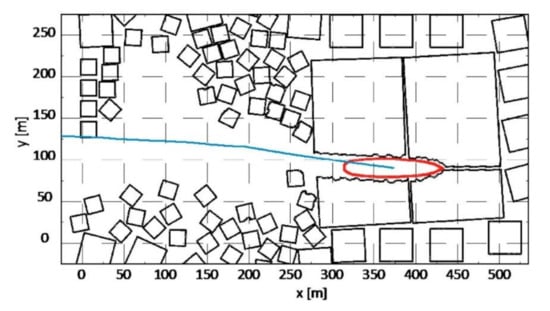 Sawamura [13] proposed another numerical simulation program that accounts for multiple failure modes, including splitting and bending, as shown in Figure 5. The contact between a ship and ice floes is calculated as an impulse using physically based modelling. Bending failure is calculated using fluid-structure interaction, while splitting is calculated using a simple formula. The simulation is carried out in 2D. Contact areas are detected using a circle contact detection technique and a constant crushing pressure is assumed. Han and Sawamura [51] apply this model to investigate the local ice loads on a ship’s hull and, based on that, to evaluate fatigue damage.