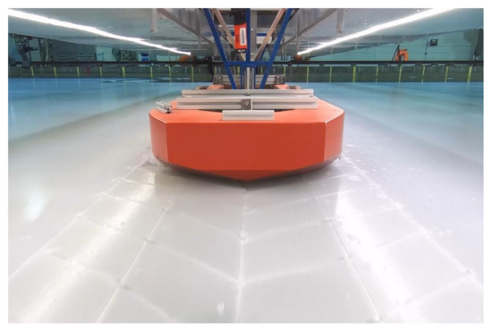 - Sawamura, J.; Kioka, S.; Konno, A. Experimental and numerical investigation on ice submerging for icebreaker with 2D model test using synthetic ice. In Proceedings of the 23rd International Conference on Port and Ocean Engineering under Arctic Conditions (POAC ‘15), Trondheim, Norway, 14–18 June 2015. [Google Scholar]