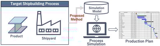 Figure 1 shows the overview of the proposed method. In the proposed method, the simulation model of the target shipbuilding process is created by system modeling. By executing process simulation using the simulation model, a realistic production plan is created as a Gantt chart form.