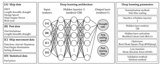 Figure 3 shows an overview of the proposed deep learning (DL) model. We constructed a DL model distinctively to predict the operation conditions in each voyage mode: laden and ballast. With each operation condition as the target feature, the model takes into account the following Capesize features as an input: